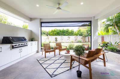 For those warm Queensland nights the covered outdoor kitchen provides a built-in plumbed gas barbecue, stone benches and draw down blinds to provide all year round use.